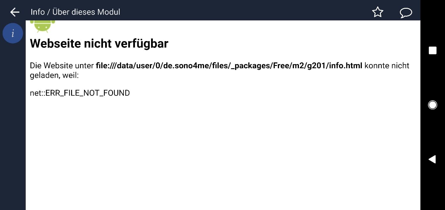 Sollten aufgrund eines gescheiterten Updates (z.B. bei schlechter oder Abbruch der Internetverbindung) Daten nicht vorhanden sein, ist es natürlich kostenfrei möglich, die App zu deinstallieren und wieder neu zu laden. Ein Fehlen der Daten zeigt sich unter iOS mit einer komplett weißen Inhaltsseite, unter Android steht hier zusätzlich in schwarzer Schrift, welche Daten nicht vorhanden sind.